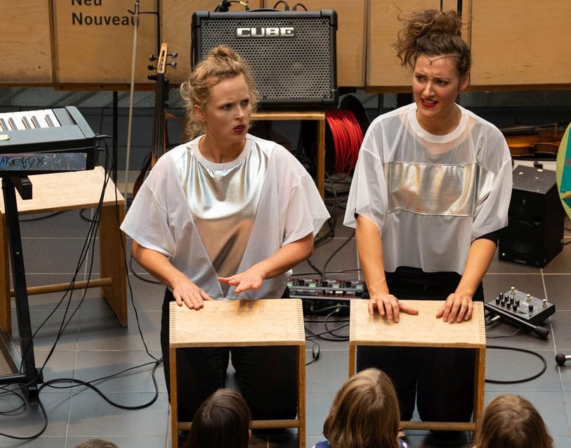 Melanie und Sara waren letztes Jahr mit «frischfisch» zu Gast am Kleinkunsttag. Mit ihnen erleben die Kinder ein bildstarkes und interaktives Konzert. Ein Glücksrad bestimmt die Reihenfolge der acht Bilderbücher, die zu Liedern wurden. In jedem Buch verbirgt sich ein eigenes, fantastisches Universum und dieses öffnete die Pforte, um mit den Liedern in eine charakteristische Klang- und Bewegungswelt einzutauchen.